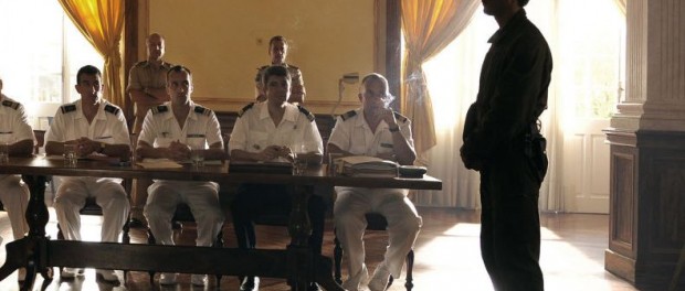 De qualquer maneira, as primeiras cenas de “A Rebelião” me indicavam este caminho. Uma crise político-militar, um herói contra tudo e contra todos, montagem ágil e dinâmica, uma incômoda narração em off… e até aquela forma clichê de situar para o público – com letrinhas imitando a digitação em computador – os locais, as datas e as horas do que estava acontecendo, tudo me fazia a crer que veria um filme francês imitando um filme americano.