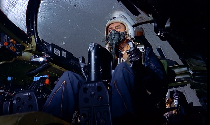 O conflito terminou (pelo menos este), mas a lição permaneceu: o cinema entrava definitivamente como ferramenta ideológica fundamental de governos em guerra. Mesmo em tempos de paz. “Comandos do Ar”, de Anthony Mann, é um exemplo marcante desta estratégia. Produzido em 1955, portanto 10 anos após o final da Segunda Grande Guerra, o longa mal disfarça ser uma gigantesca peça publicitária da Força Aérea dos EUA. Com direito a hino marcial patriótico em sua trilha sonora, logo na abertura.
