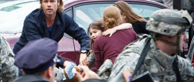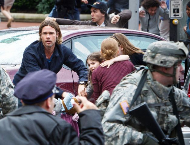 No filme, não se explica exatamente porque as pessoas estão se transformando em zumbis. Assim como muitos médicos falam quando não sabem do que se trata, aqui também temos uma “virose”. Mas não importa. Todo o roteiro é calcado na luta contra o tempo que o funcionário da ONU Gerry Lane (Brad Pitt) tem que empreender para salvar o mundo. É um filme de uma nota só, que não tem muito a mostrar a não ser o corre-corre desesperado estilo gato e rato. É até difícil crer que foram necessários 4 roteiristas para desenvolver a trama, a partir do livro de Max Brooks (um dos roteiristas do programa “Saturday Night Live”).