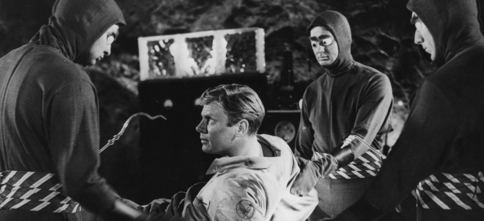Peter Graves (antes de ser o astro do seriado “Missão Impossível” e muito, muito antes de “Apertem os Cintos, o Piloto Sumiu”) é Doug Martin, piloto (!) da força aérea dos Estados Unidos que participa de um teste de lançamento de uma bomba atômica. Sim, em 1954 só se falava disso. Mas algo dá errado, seu avião cai e Doug é dado como morto. Inexplicavelmente, pouco depois, ele aparece cambaleante na base aérea, sem nenhum ferimento, mas com uma cicatriz de uma operação no peito.