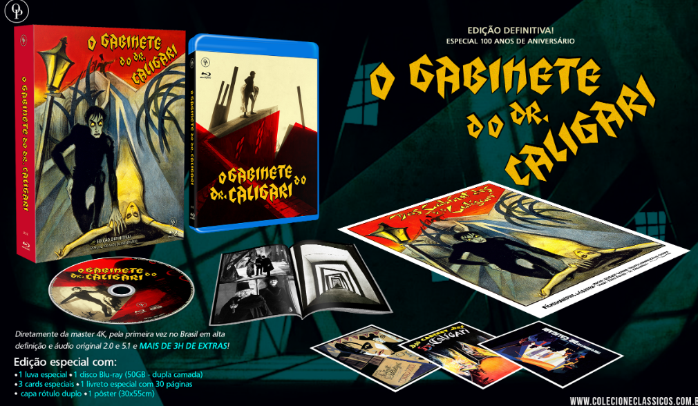 Em comemoração ao centenário de um dos maiores clássicos da História do Cinema, em todas as épocas, o selo Obras-Primas do Cinema lança em blu-ray uma edição tida como “definitiva” de O GABINETE DO DR. CALIGARI.