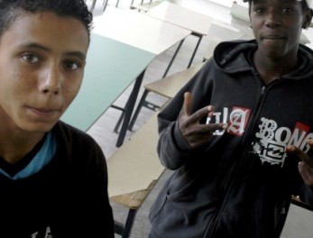 No caso, os seres que serão os perseguidos pelas lentes de Affonso Uchôa por quatro anos (entre 2009 e 2013) são daqueles imigrantes sociais, pois naturais de onde habitam mesmo, mas frutos de exclusão que os faz serem quase estrangeiros desamparados por uma instituição (o governo) que os nota como se fossem estrangeiros invasores e usurpadores do pouco que restaria para os outros. O diretor vai à periferia de Contagem (MG), no bairro Nacional, dando . atenção maior a Juninho, Menor, Neguinho, Adilson e Eldo. Mas não se esquece da mãe do mais velho – que será o mais atingido pelos impactos todos – que numa tocante cena reza e benze a água que dará para o filho beber pedindo Jesus e Maria o protejam . Cena tocante que parece quase um OVNI (quase, mas não a única) diante de sucessões incrivelmente boas, onde transparece o apego de alguns pela violência (na realidade não apego, mas a compreensão de que ela é natural em seu meio), ou o lado infantil na “caça” às frutas, ou ainda no nos momento de conversas em que uns fumam maconha de forma natural enquanto os mais novos parecem ainda só crianças em crescimento… A cena do skate dado significa que uns se preocupam com outros, mesmo parecendo impossível, mas como um tapa na nossa cara, que nunca nos preocuparemos pra valer; as de música bastante boas, sempre; o instante da tinta na cara e no cabelo extremamente hilário (e porque há infância e inocência teimando em resistir naquelas mentes); o da ida embora de um, o bilhete, sua imagem fora de lá, para um final já em 2013, com alguns andando de skate nas ruas (ligação linda do tempo que passou, do que presenteou porque se preocupava com o mais novo). Rara persistência essa a de Uchôa; rara sua sensibilidade; rara sua antevisão e mais rara sua obra.